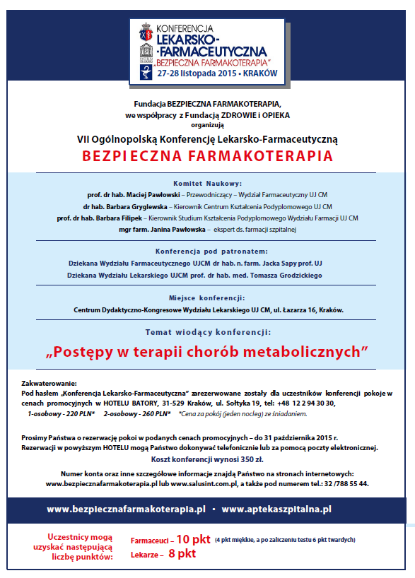 2015-06-29Ogólnopolska Konferencja Lekarsko-Farmaceutyczna BEZPIECZNA FARMAKOTERPAIA