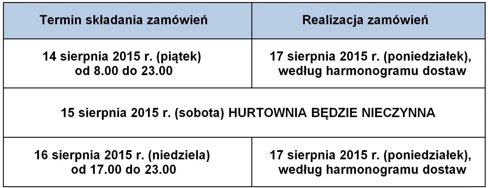 2015-08-01Harmonogram pracy Hurtowni w dniu 15 sierpnia br.