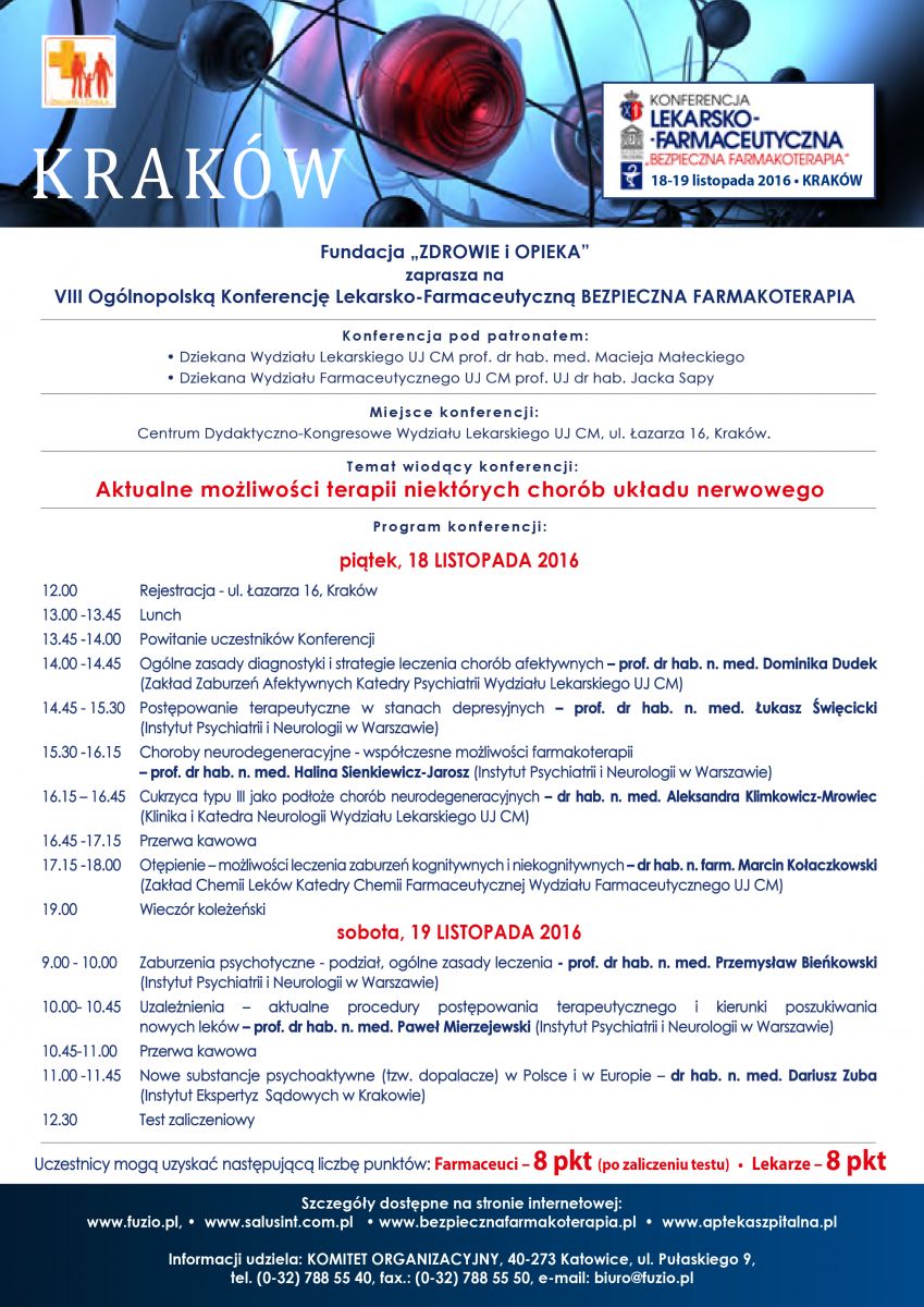 2016-03-28VIII Ogólnopolska Konferencja Lekarsko-Farmaceutyczna BEZPIECZNA FARMAKOTERAPIA