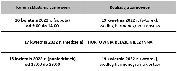 2022-04-14Harmonogram pracy hurtowni w czasie Świąt Wielkanocnych