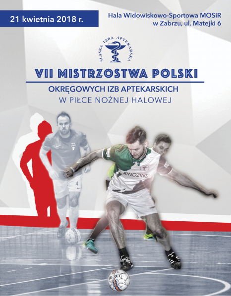 Jest nam niezmiernie miło poinformować, że swój udział w VII Mistrzostwach Polski Okręgowych Izb Aptekarskich w Piłce Nożnej Halowej, które odbędą się w dniach 20-22.04.2018 r. w Hali Widowiskowo-Sportowej Miejskiego Ośrodka Sportu i Rekreacji w Zabrzu przy ul. Matejki 6 potwierdziło 11 drużyn z Okręgowych Izby Aptekarskich w: Bielsku-Białej, Bydgoszczy, Gdańska, Katowic, Kielc, Krakowa, Łodzi, Poznania, Szczecina, Warszawy oraz Zielonej Góry. W zawodach weźmie udział ponad 100 farmaceutów, którzy rozegrają 33 mecze.